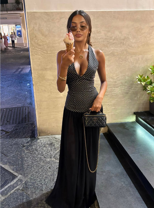 MARGUERITE HALTER MAXI DRESS WHITE POLKA