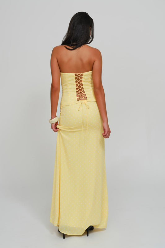 LUNA DRESS WITH POLKA DOTS - BROWN/YELLOW