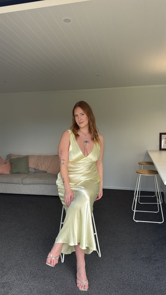 Ruby Maxi Dress - Halter Scoop Neck Low Back Bodycon Dress in Lemon