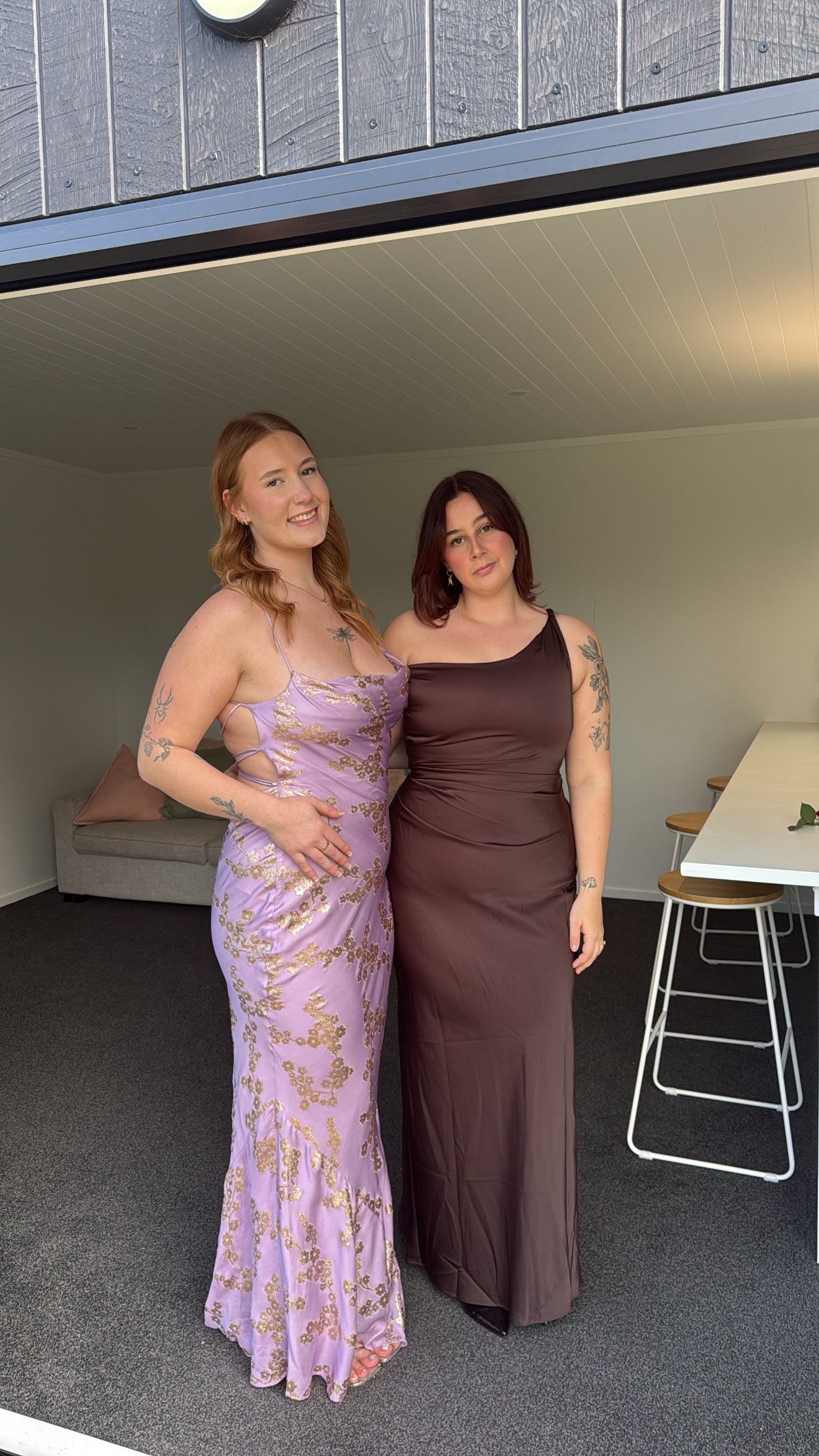 Lift it up when walking outside, refrain from wearing bracelets or bags that may pull on the material. Avoid any sort of nail glue, polish or ink. Hang the dress up.