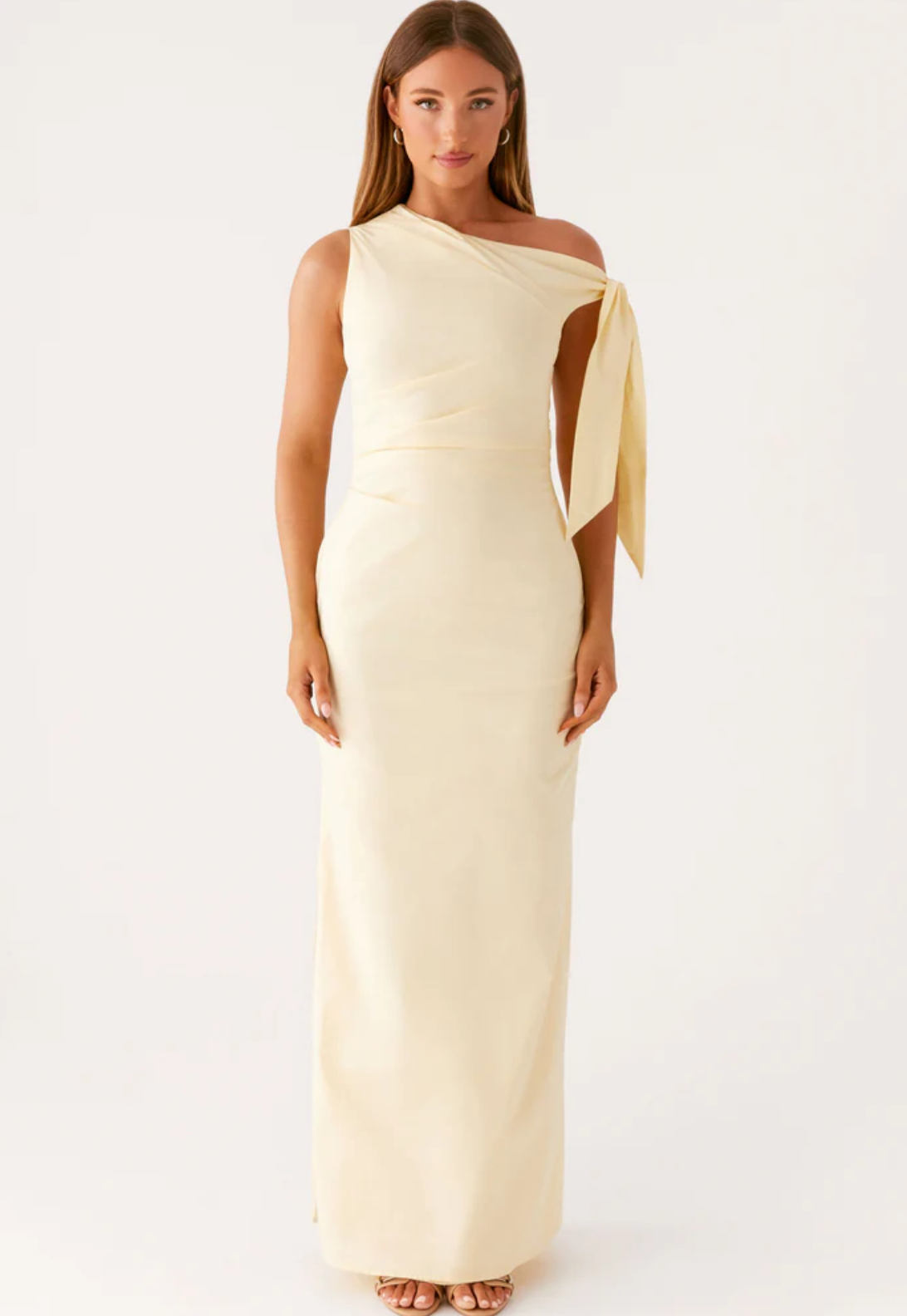 Lift it up when walking outside, refrain from wearing bracelets or bags that may pull on the material. Avoid any sort of nail glue, polish or ink. Hang the dress up.