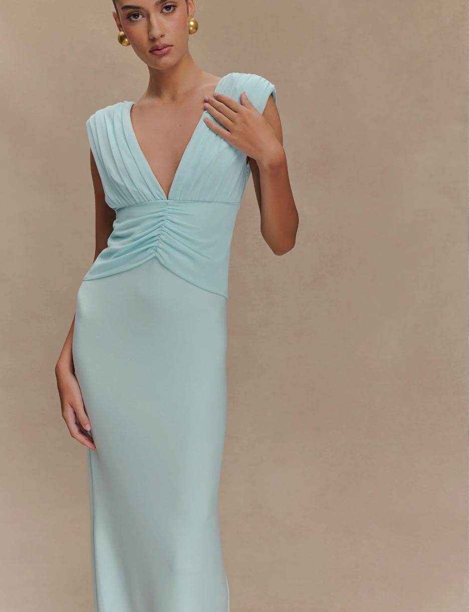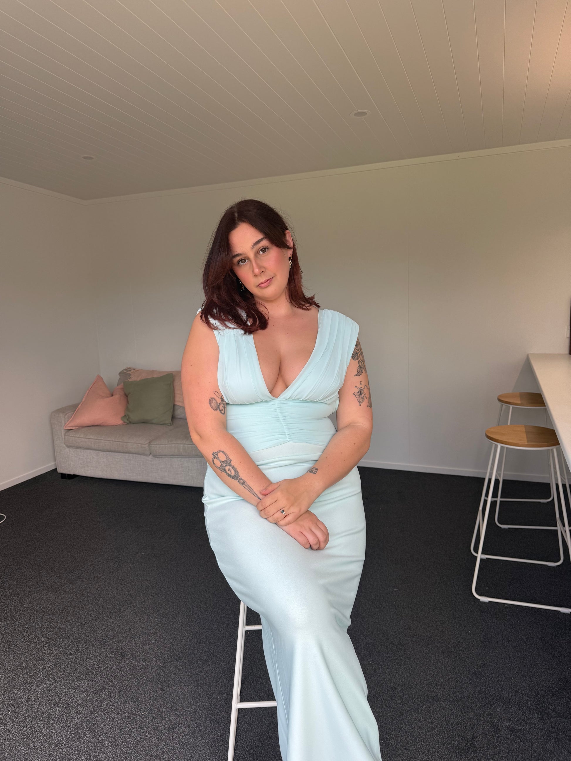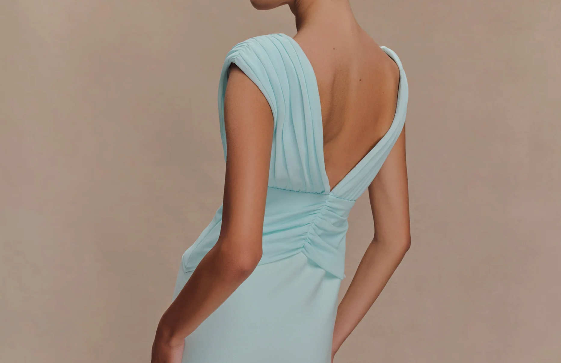 Lift it up when walking outside, refrain from wearing bracelets or bags that may pull on the material. Avoid any sort of nail glue, polish or ink. Hang the dress up.