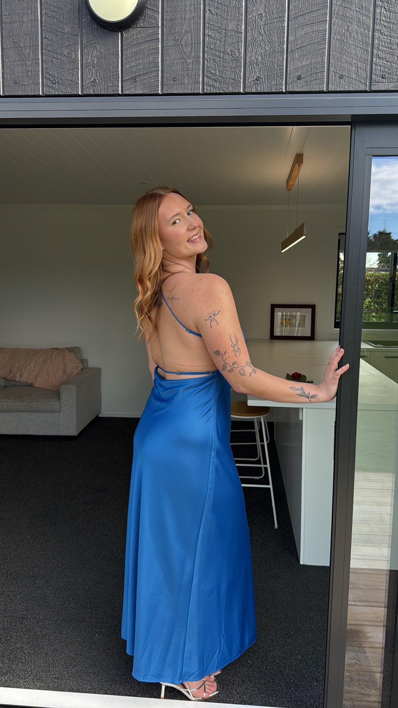Lift it up when walking outside, refrain from wearing bracelets or bags that may pull on the material. Avoid any sort of nail glue, polish or ink. Hang the dress up.